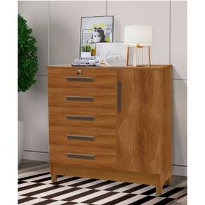 Comoda VITÓRIA 1 Porta 5 Gavetas CEDRO - Marrom