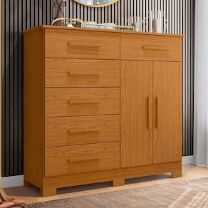 Cômoda Xangai 2 Portas e 6 Gavetas - Móveis Albatroz A Cômoda Xangai é uma peça versátil e elegante com 2 portas e 6 gavetas, ideal para otimizar o espaço e a organização em sua casa. Feita com estrutura em MDP e acabamento em pintura UV, ela oferece resistência e durabilidade. As 2 portas com dobradiças metálicas garantem um acesso fácil e suave ao espaço interno, que conta com uma prateleira para melhor organização. Suas 6 gavetas são equipadas com corrediças telescópicas, assegurando um deslizamento suave. Os puxadores em MDF revestidos proporcionam um toque sofisticado ao design, enquanto os pés em ABS garantem estabilidade e proteção. Transforme seu ambiente com a Cômoda Xangai, que une funcionalidade e estilo em uma única peça.