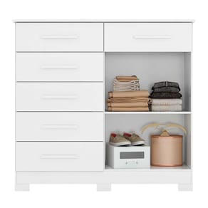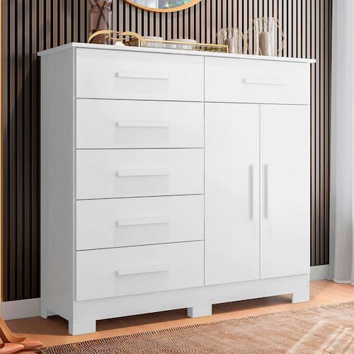 que tal a cômoda xangai? para quem busca um móvel versátil e funcional, a cômoda xangai é a escolha perfeita! com estrutura robusta, ela possui 6 gavetas com corrediças telescópicas, garantindo suavidade na abertura e fechamento - as 2 portas oferecem também amplo espaço para organizar roupas e acessórios. destaque no design, a peça tem puxadores em mdf revestidos e cor atemporal, itens que dão um toque elegante à decoração. perfeita, né? Marca: Modern