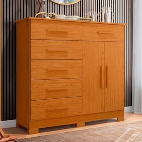 que tal a cômoda xangai? para quem busca um móvel versátil e funcional, a cômoda xangai é a escolha perfeita! com estrutura robusta, ela possui 6 gavetas com corrediças telescópicas, garantindo suavidade na abertura e fechamento - as 2 portas oferecem também amplo espaço para organizar roupas e acessórios. destaque no design, a peça tem puxadores em mdf revestidos e cor atemporal, itens que dão um toque elegante à decoração. perfeita, né? Marca: Modern