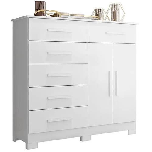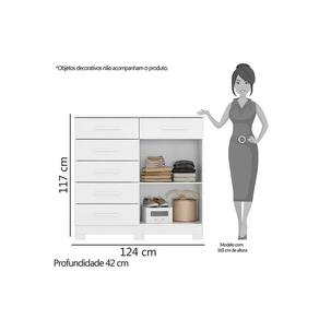 Cômoda Xangai 6 Gavetas 2 Portas Albatroz Olha só que linda a Cômoda Xangai 6 Gavetas 2 Portas Albatroz! Agora sim seu quarto estará completo com suas roupas e pertences bem organizados. A Cômoda Xangai 6 Gavetas 2 Portas Albatroz é um produto completo: Possui corrediças telescópicas, duas portas com prateleira interna e seis gavetas para deixar suas roupas muito mais organizadas. Não perca tempo e garanta a sua agora mesmo! MEDIDAS Altura 117 cm Largura 124 cm Profundidade 42 cm CARACTERÍSTICAS Fabricante Albatroz Modelo Cômoda Xangai Garantia 3 meses Tipo de produto Cômoda Ambiente Quarto Material MDP Quantidade de Gavetas 06 Estilo Moderno Quantidade de Pés 06 Acabamento Pintura UV Quantidade de Portas 02 Tipo de Porta Bater Quantidade de Prateleiras 01 Tipo de Corrediça Telescópica Possui Chave Não Necessita Montagem Sim Acompanha Manual de Instalação Sim INFORMAÇÕES IMPORTANTES Objetos decorativos que porventura apareçam na foto, não acompanham o produto. Não nos responsabilizamos pela montagem/instalação dos produtos. Montagens, desmontagens e instalações são responsabilidades do cliente. Indicamos que contrate uma empresa de montagem ou um montador de sua confiança. Além disso, favor verificar se os pés e acessórios estão dentro do forro inferior do produto. Em suma, todas as informações divulgadas sobre o produto são de responsabilidade do Fabricante. As cores do produto podem variar de acordo com o seu monitor, a iluminação do ambiente em que você está e até mesmo a sua percepção visual. Além da cor, pequenos detalhes e acabamentos podem não ficar evidentes na foto, por isso as imagens são meramente ilustrativas.