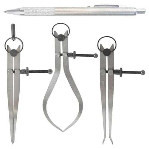 O compasso industrial é uma ferramenta fabricada em aço, capaz de realizar marcações circulares em dimensões mais rígidas, como o metal. Diferente do compasso comum, esse tipo de ferramenta não possui grafites em sua vértices, e sim uma pequena superfície resistente, e pontiaguda, por onde se realiza o risco. No mercado industrial existe inúmeros modelos e tamanhos disponíveis hoje, possibilitando operar interno e externamente, variando de acordo com a necessidade de quem usa.