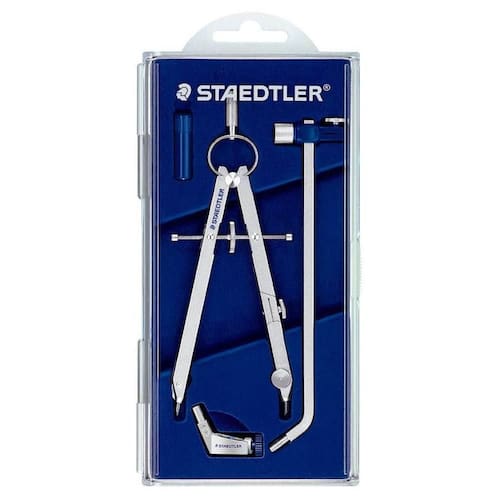 Compasso Técnico Staedtler Comfort Com Barra Extensora 551 02 Compasso técnico Mars Comfort com extensor. Compasso de precisão com roda central de ajuste, cabeça em formato de arco e junta ajustável. É excelente para o desenho preciso de círculos e arcos: possui uma roda central para melhor ajuste da abertura, cabeça em formato de arco e braços articulados