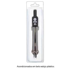 Fabricado em latão cromado e nylon especial. Modelo com duas pontas secas, ou com ponta seca e grafite. Acompanha dois grafites de 2 mm, uma agulha grossa. Acondicionado em belo estojo plástico.