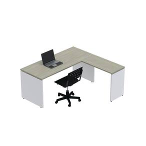 Complemento de Mesa Pé Painel Linha P25 Nogueira casblanca/Branco - Cinza