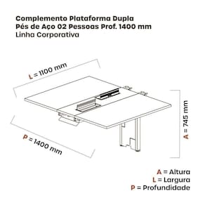 Complemento de mesa plataforma Para Coworking para 2 pessoas é uma ótima opção para quem busca um ambiente de trabalho moderno, funcional e confortável. Esse complemento de mesa possui uma estrutura de aço resistente e elegante, com espaço para a instalação de tomadas e conectores. Além disso, é permitindo adequar com mais plataformas para criar uma interação dinâmica e colaborativa, transfonando seu espaço de trabalho produtivo, criativo e agradável.
