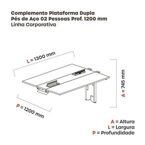 Complemento de Mesa Plataforma para Coworking para 2 Pessoas 130X120 Preto/Cinza