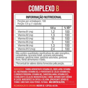 Complexo b 180 caps 500mg vits b1 b2 b3 b5 b6 b12 - nutrione O complexo b 180 cápsulas da nutrione é uma fórmula avançada que reúne as vitaminas essenciais do grupo b para promover a saúde e o bem-estar geral. Cada cápsula contém uma cuidadosa combinação de vitaminas, incluindo 1,2mg de b1, 1,3mg de b2, 16mg de b3, 5mg de b5, 1,3mg de b6 e 2,4mg de b12. Benefícios: Suporte ao sistema nervoso Metabolismo energético otimizado Contribuição para a saúde mental e emocional Vantagens: Tecnologia avançada de fabricação Livre de glúten Alta concentração de vitaminas do complexo b Potência superior no mercado 180 cápsulas por embalagem Comprando hoje ganhe gratuitamente um porta comprimidos da nutrione, para manter seus comprimidos seguros, bem acondicionados e organizados. Conte também com nosso serviço de atendimento ao consumidor dedicado: Suporte ao cliente todos os dias da semana exclusiva nutrione você totalmente satisfeito com o nossa vitamina c ou seu dinheiro de volta Ingredientes com a melhor qualidade do mercado, inspecionados e fabricados rigorosamente de acordo com as normas da anvisa Marca: Não Informado