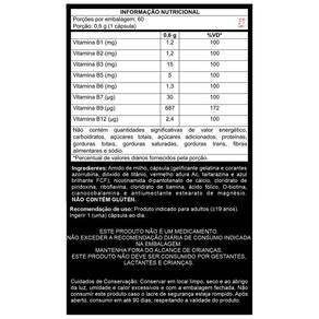 Benefícios - apenas 1 cápsula ao dia; - 60 doses/porções por frasco; - cada dose/porção 1 cápsula fornece 100% da idr; - auxilia no metabolismo energético; - auxilia no metabolismo de proteínas, carboidratos e gorduras; - contribui para a manutenção da pele, olhos e cabelos; - ajuda na atividade física; - não contém glúten.