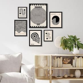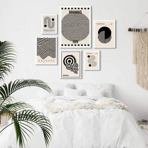 Composição 6 quadros bauhaus preto e branco Moldura: madeira branca Informações do produto tire todas as suas dúvidas no descritivo abaixo: decoração para quarto, sala, cozinha, escritório, área gourmet e muito mais. Chega de paredes vazias medidas - kit composto por 6 quadros, sendo 2 quadros com medida 18x24cm, 3 quadros com 24x33cm e 1 quadro com medida 33x45cm. Material do papel - papel fotográfico brilhante de altíssima resolução acabamento - todos os quadros são acompanhados de uma película de acetato para proteção da imagem. - os quadros são embalados de forma segura com plástico bolha com camada dupla de acordo com o tamanho dos quadros. Garantia - garantia de 3 meses. Meu quadro chegou. Como posso fixá-lo Você precisa apenas de um martelo e um prego, pois os quadros já vão acompanhados de penduradores. Esta é a forma mais indicada. Caso prefira, você pode utilizar uma fita dupla face neste caso, sugerimos de alta qualidade para evitar que descole e seu quadro caia . Como posso limpar meu quadro A limpeza é feita como um móvel comum da sua casa. Apenas um pano seco ou espanador são suficientes para tal