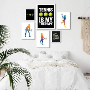 Composição 6 quadros jogadoras de tênis frases Moldura: madeira preta Informações do produto tire todas as suas dúvidas no descritivo abaixo: decoração para quarto, sala, cozinha, escritório, área gourmet e muito mais. Chega de paredes vazias medidas - kit composto por 6 quadros, sendo 2 quadros com medida 18x24cm, 3 quadros com 24x33cm e 1 quadro com medida 33x45cm. Material do papel - papel fotográfico brilhante de altíssima resolução acabamento - todos os quadros são acompanhados de uma película de acetato para proteção da imagem. - os quadros são embalados de forma segura com plástico bolha com camada dupla de acordo com o tamanho dos quadros. Garantia - garantia de 3 meses. Meu quadro chegou. Como posso fixá-lo Você precisa apenas de um martelo e um prego, pois os quadros já vão acompanhados de penduradores. Esta é a forma mais indicada. Caso prefira, você pode utilizar uma fita dupla face neste caso, sugerimos de alta qualidade para evitar que descole e seu quadro caia . Como posso limpar meu quadro A limpeza é feita como um móvel comum da sua casa. Apenas um pano seco ou espanador são suficientes para tal