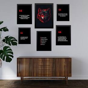 Composição 6 quadros motivacionais sucesso - lobo - com vidro Cor: moldura preta Informações do produto tire todas as suas dúvidas no descritivo abaixo: decoração para quarto, sala, cozinha, escritório, área gourmet e muito mais. Chega de paredes vazias medidas - kit composto por 6 quadros, sendo 2 quadros com medida 18x24cm, 3 quadros com 24x33cm e 1 quadro com medida 33x45cm. Material do papel - papel fotográfico brilhante de altíssima resolução acabamento - todos os quadros são acompanhados de vidro para proteção da imagem. - moldura em madeira maciça na cor preta ou branca conforme produto escolhido e pendurador . - os quadros são embalados de forma segura com plástico bolha com camada dupla de acordo com o tamanho dos quadros. - de 3 meses. Meu quadro chegou. Como posso fixá-lo Você precisa apenas de um martelo e um prego, pois os quadros já vão acompanhados de penduradores. Esta é a forma mais indicada. Como posso limpar meu quadro A limpeza é feita como um móvel comum da sua casa. Apenas um pano seco ou espanador são suficientes para tal