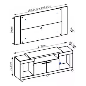Dimensões do Produto (Rack): Altura: 70,5 cm Largura: 173 cm Profundidade: 38,5 cm Peso: 41kg