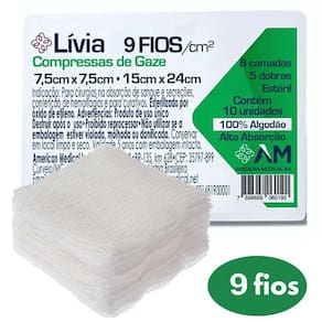 Compressa de Gaze Estéril 9 fios Livia América - 10 Pacotes