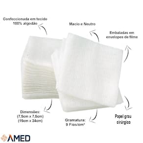 Apresentação: - Pacote com 10 compressas de gaze em 100% algodão hidrófilo embaladas em papel grau cirúrgico esterilizadas; - 9 fios - Marca: América
