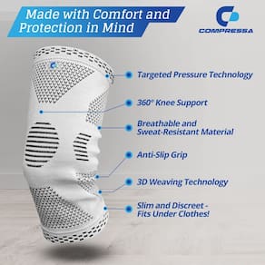 - Manga de compressão de joelho premium com classificação nº 1 nos EUA: Recupere-se rapidamente de dores nas articulações, entorses e tendinite patelar com as melhores joelheiras da Compressa para homens. Projetada para compressão de alta qualidade e conforto excepcional, esta joelheira de compressão para mulheres é ideal para acelerar a recuperação de lesões agudas e crônicas. Confiável em todos os EUA, a Compressa oferece suporte superior para ajudar você a curar mais rápido e retornar às suas atividades diárias com facilidade.