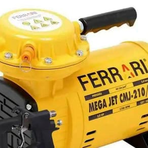 Compressor Ar Direto 1/2 HP Mega JET CML-210/3,2 FERRARI Ganhe tempo e facilite seu trabalho. O Compressor de Ar Mega Jet Ferrari é o mais Potente da Categoria com Motor de 1/2 HP que possibilita uma vazão maior de 90 litros por minutos 3,2 pcm. Acompanha kit para pintura ou pulverização. Ideal para fazer retoques de pinturas em eletrodoméstico, venezianas, portas e pinturas artesanais em geral como no aeromodelismo, nautimodelismo e automodelismo. Para limpeza ou pulverização de motores de carros, motos, peças em geral e equipamentos eletrônicos como teclados, placas e outros. Utilizado em ateliês de artesanato, pequenas oficinas de manutenção, para uso doméstico em residência, apartamento, casa na praia, camping, no sítio e até em escritório por possuir baixo nível de ruído. BENEFÍCIOS: Acompanha Kit com uma Pistola e uma mangueira espiral 1/4 pol (porca roscada). Não desperdice tinta e energia : Mais economia para você. Pistola de pintura de alta eficiência e desempenho - Maior área pintada em menor tempo, muito mais rápido do que as pistolas tradicionais. Pistola em plástico resistência: Fácil e rápido de limpar. Leve e compacta: Proporciona maior conforto no manuseio. Satisfação garantida no final da pintura: Acabamento perfeito. Pronta para trabalhar: Fácil e rápido instalação (conectores roscados). 01 mangueira (porca roscada). Compressor de ar de diafragma. Tipo do motor: Blindado, bivolt, com troca chaveada. Isento de óleo: Fácil manutenção. Corpo em ferro fundido Empunhadura de borracha Possui protetor térmico: em caso de superaquecimento evita a queima do motor. Cabo Elétrico de 2 metros com plugue bipolar com aterramento, conforme exigência do INMETRO. DADOS TÉCNICOS: Potência: 1/2 HP - Bivolt 127/220V com chave seletora. Rotação do motor: 1750 rpm. Capacidade do Motor: 1/2HP. Tensão nominal: 127/220 volts (bivolt). Pressão máxima de trabalho: 40 psi (2.8 bar). Deslocamento teórico (vazão): 90 l/min - 3,2 pcm. Dimensões da Embalagem: 440 x 180 x 260 mm. Peso: 8.3/9.8 kg. Ref: AAC1020007 Marca: Ferrari Garantia: 3 meses