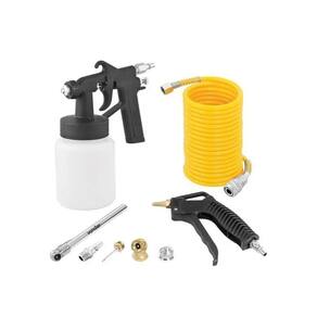 - 1 compressor de ar direto; - 1 pistola para pintura; - 1 conector 1/4'' para engate rápido rosca fêmea; - 1 pistola para limpeza; - 2 conectores 1/4'' para engate rápido rosca macho; - 1 mangueira espiral de 5 m (1 ponta rosca fêmea/1 ponta rosa macho - Ambas 1/4''); - 1 engate rápido com rolete; - 1 bico jato dirigido para pistola de pintura; - 1 bico para encher pneu; - 1 bico para encher bola; - 1 medidor de pressão para pneus.