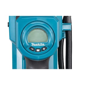 CARACTERÍSTICAS Maior nível . Maior vazão de ar. Resistente à água e poeira com a tecnologia XPT. Manômetro digital. 3 modos de enchimento. Função de liberação de ar. Iluminação de trabalho. Ideal para calibragem de pneus de tratores, SUVs, automóveis, motocicletas, bicicletas objetos infláveis, etc. ESPECIFICAÇÕES Pressão máxima de ar: 1.100 kPa 161 PSI Vazão - Alta: 22L/min - Baixa: 11L/min Comprimento da mangueira: 65cm Nível de ruído: 71 dB A Nível de vibração: 3.8 m/s Dimensões c x L x A : 297 x 108 x 231mm Peso: 2.5kg Bateria: 18V ITENS QUE ACOMPANHAM Bico americano, bico francês, bico britânico, bico para bolas e bico para boias. Não acompanham bateria e carregador. Esta versão é recomendada para quem já possui ferramenta a bateria da linha 18V LXT. Marca: Não Informado
