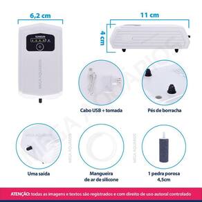 Compressor de ar Sunsun APQ-101 com nobreack a bateria liga automaticamente quando ocorrer quedas de energia - bivolt - acompanha mangueira e pedra porosa