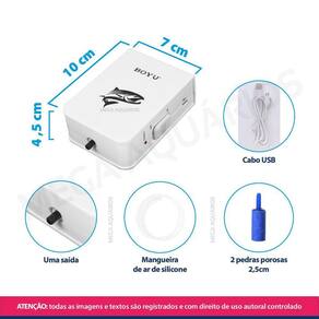 Compressor de ar Boyu 1 saída com bateria recarregável ideal para transporte de isca viva e manter a oxigenação do aquário em caso de queda de luz - acompanha mangueira e pedra porosa