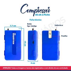 Itens inclusos: 1 - Compressor de ar a pilha 1 - 50cm mangueira de ar de silicone de 4mm 1 - Pedra porosa de 2x2 cm.