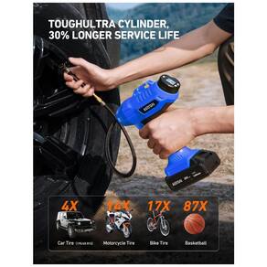 ESTRUTURA INFLÁVEL METÁLICA É composta por cilindro metálico e engrenagem metálica, podendo funcionar continuamente por 20 minutos, a pressão máxima do ar pode chegar a 160 psi, atender a necessidade de 4 pneus por vez, mais eficiente e rápido de usar. FONTE DE ALIMENTAÇÃO DUPLA Fonte de alimentação DC 12V e fonte de alimentação de bateria de lítio recarregável de 20V torna a inflação mais fácil. O fundo é estável o suficiente para que você não precise segurá lo. Você nem mesmo precisa se preocupar em ficar sem bateria durante a viagem. DESLIGAMENTO AUTOMÁTICO LCD APRESENTA MAIS Predefina o valor desejado e o compressor de ar desligará automaticamente quando o valor for atingido. A tela LCD retroiluminada exibirá o valor da pressão do pneu desejada e a pressão atual do pneu. A unidade de pressão do ar pode ser alternada entre bar, kPa e PSI. INFLAÇÃO E CARGA RÁPIDA Ar , Eletricidade A tensão de trabalho de 20 V fornecida pela bateria de lítio pode inflar rapidamente, pneus de tamanho 195, 65 , R15 podem ser abastecidos em apenas 4 minutos. A bateria de lítio de alta eficiência de 2000mAh pode carregar 4 pneus do mesmo tamanho ao mesmo tempo, e o carregador exclusivo permite que a bateria vá de 0 a cheia em apenas 1 hora. MÚLTIPLOS FINS FÁCIL DE USAR O compressor de ar é compatível com SUVs, carros, motores, bicicletas e produtos infláveis do tamanho de basquete. Nota não é adequado para pneus de caminhões grandes. Acompanha bolsa de zenamento exclusiva, fácil de transportar. A luz LED também permite que você infle no escuro Marca: Não Informado