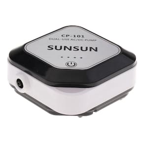 Compressor ar no-break a bateria CP-101 Equipamento Indispensável de emergência para o aquário, excelente assessório para pescaria ou transporte de peixes vivos ou iscas. Acabamento de proteção contra umidade. (não é submergível). Proporciona 20 horas de uso contínuo (Bateria com 100% de carga). Opção para uso intermitente liga 20 segundos/desliga 20 segundos com autonomia para até 40 horas (bateria com 100% de carga). Para uso como no-break deve ser instalado no aquário como compressor oxigenador ou decorativo, em caso de queda de energia elétrica, continua acionado pela bateria. Não dispõe de programação que possa ficar desligado e ligue somente em quedas de energia. Dispõe: Mostrador de carga da bateria. Filtro de ar com refil. Pezinhos de borracha anti-vibração e silenciador. Acessórios: 1.5mt de mangueira silicone 4mm; 01un. Difusor de pedra porosa; 01 refil filtro de ar Kit de presilha e suporte; 01 Fonte bivolt; 01 cabo entrada em USB. Instruções básicas: Pressione 3 segundos o botão para ligar; Pressione o mesmo botão para optar por Funcionamento contínuo ou com intervalo; Pressione 3 segundos para desligar. Dados técnicos: Bateria 2200mAh DC 5V Power 1w Fluxo 1,5 l/min. Medidas: 10x10,5x5cm