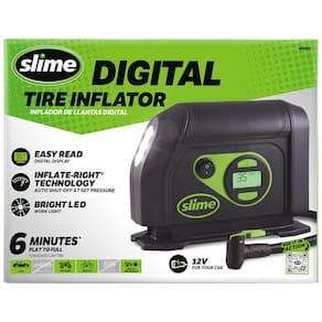 Este inflador de pneus digital é um inflador de pneus compacto para uso diário que faz o trabalho. Nada extravagante, apenas um inflador de pneus confiável e durável. Com a tecnologia Inflate Right do Slime, basta definir a pressão desejada no visor, ligar o inflador e ir embora, é muito fácil. O inflador de pneus funciona com a tomada de acessórios do carro de 12 volts e possui um visor digital integrado fácil de ler 0 99 psi, uma luz LED brilhante e cabo de alimentação de 3m. Sensor de pneu , inclui pés emborrachados para proporcionar estabilidade durante o uso e adaptadores de ar multiuso para jangadas, bolas e outros infláveis. Tempo de inflação de 6 minutos de vazio a cheio para pneus padrão. Tipo de ajuste ajuste universal Marca: Não Informado