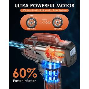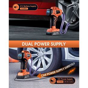KeenPower Compressor de ar portátil com inflador de pneu de 21V O que você receberia: um inflador de pneu sem fio, bateria de íon de lítio KeenPower de 21 volts, linha de adaptador de energia de carro de 12V, carregador de bateria, 4 bicos, manual do usuário e uma bolsa de ferramentas para fácil armazenamento. - DETECTAR E DETECTAR AUTOMÁTICO: preencha o valor desejado e pressione o botão Iniciar, o inflador de pneu começará a inflar e mostrará a pressão em tempo real, o compressor de ar desligará automaticamente quando a pressão for atingida. Chega de se preocupar em inflar muito ou pouco. - Fonte de alimentação dupla: bateria de íon de lítio recarregável de 21 V e adaptador CC de alimentação de carro de 12 V tornam o enchimento mais conveniente. Usar um adaptador CC de alimentação de carro de 12 V seria uma ótima solução quando estiver em movimento, em caso de emergência quando a bateria acabar. - INFLAÇÃO RÁPIDA E DESIGN AMIGÁVEL PARA O USUÁRIO: O inflador de pneus tem um chip embutido de alto desempenho que pode inflar pneus airless 195/60 R14 a 35psi em 3 minutos e pneus airless 215/60 R16 a 35psi em 5 minutos. A forma ergonômica torna fácil e confortável segurar em suas mãos, ou você pode colocá-lo no chão. Enquanto o inflador estiver funcionando, você pode ligar a lanterna embutida para iluminar locais de trabalho escuros. - Multiuso: o inflador de pneus KeenPower 21V é adequado para carros, motocicletas, bicicletas, bolas esportivas e brinquedos infláveis de piscina, etc. Observação: não é adequado para pneus de caminhões grandes. - Mais do que um inflador de pneu: a lanterna embutida na bomba de ar pode alternar livremente entre três modos: modo normal, modo estroboscópico, modo de iluminação SOS. No pacote de bateria de íon de lítio recarregável do inflador há uma porta de saída USB-C 9V/2A QC3.0.