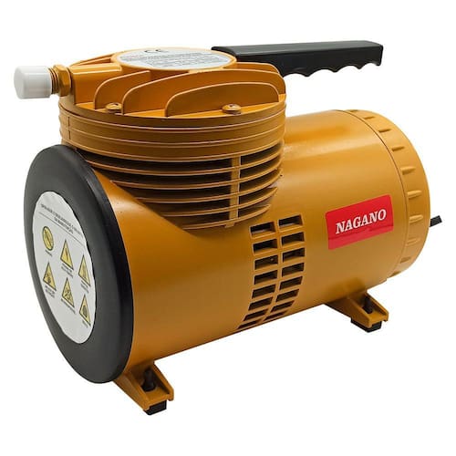 Compressor de Ar Mini Elétrico Portátil 110v220v Nagano um equipamento único para revestimento com tinta e resultado profissional Solução inteligente em trabalhos de pulverização aero grafia ou enchimento de pneu de carro pneu de moto pneu de bicicleta e balões Peso 45KgCorrente elétrica 1352APotência 14HPNão acompanha mangueira