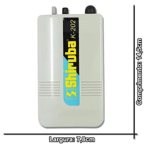 Compressor de Ar Pesca Oxigenador Shiruba K-202 à Pilha Produto para quem pesca com isca viva mantendo as iscas vivas por muito mais tempo e também é muito para aquários. O aerador da Shiruba modelo K-202 funciona com 2 pilhas D tamanho grande . Também conhecido como Air Pump, esse modelo de oxigenador da Shiruba, a prova dágua, tem vedação em toda sua volta e nos orifícios assim como os botões, tornando mais durável e resistente. Acompanha mangueira com aproximadamente 60 cm, pedra porosa que serve para dispersar as bolhas e clip na tampa para prender o oxigenador. Produto indispensável em sua mala de pesca. Especificações: - Contém: 1 oxigenador, 1 mangueira, 1 pedra porosa - Velocidade: 1 - 1 saída - Voltagem: 3 volts - Alimentação: funciona com 2 pilhas D Grande não inclusas - Tempo de uso: aproximadamente 50 horas com pilhas novas - Dimensões CxLxA : 14,5cm x 8cm x 4,5cm - Peso: 200gr Marca: Não Informado