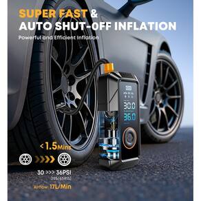- 👍? ?Este compressor de ar portátil para inflação de pneus proporciona pressão máxima de 160 PSI e fluxo de ar de 35 L/min para inflação rápida. É 35% mais potente e pode inflar pneus até 5 vezes mais rápido, enchendo um pneu 195/65R15 de 29 PSI a 35 PSI em menos de 2 minutos. Perfeito para pneus de carro, bicicleta e motocicleta