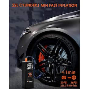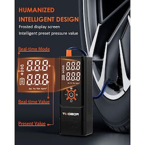 Compressor de ar portátil para inflador de pneu, bomba de pneu de carro timobor 150 PSI integra inflável, banco de potência de 20000 mAh e luz SOS, o que o torna um bom parceiro na estrada - Versátil e portátil: este inflador de pneus está equipado com 5 bicos infláveis. De carro, motocicleta, bicicleta a bola, anel de natação e tapete de ar, você só precisa de uma das nossas bombas de pneu para dizer adeus a vários produtos infláveis, mantendo a família organizada e fácil de armazenar. Este inflador de pneus é muito leve, pode ser colocado na caixa de armazenamento do carro, também pode ser colocado no porta-copos de bicicleta ou mochila, para que você possa desfrutar facilmente da estrada sem se preocupar com pneus furados desacelerando sua jornada - Rápido e silencioso: este compressor de ar portátil para inflar pneus tem um cilindro todo em metal integrado, o ímã permanente de metal que pode continuamente gerar energia poderosa para inflar um pneu de carro de 0 a 36 PSI em apenas 3 minutos; esta bomba de pneu portátil para carro permite que você complete a inflação em um ambiente de baixo ruído enquanto também tem uma função de dissipação de calor. - Com fio e sem fio: com uma bateria embutida de 20.000 mAh, a bomba de pneu portátil pode funcionar continuamente por quase 1 a 2 horas. Você só precisa conectar a porta de enchimento e a bomba de ar com um tubo de enchimento para inflar sem fio. Não se preocupe se a bateria acabar, também fornecemos um fio de ignição de 12 V, basta conectar ao isqueiro do carro para inflar com fio. Você pode alternar entre os dois métodos de enchimento à vontade, o que é uma excelente solução de emergência no caminho. - Conveniente e requintado: fácil de operar, com valores de pressão predefinidos para bicicletas, motocicletas, carros e bolas. Basta selecionar o modo de enchimento e a bomba de ar desligará automaticamente quando o valor predefinido for atingido. Claro, você também pode personalizar o valor de pressão de até 150 PSI. Você também pode alternar facilmente a unidade de pressão com um clique. É lindamente embalado em uma caixa com um saco de presente, que pode ser dado como presente no Dia dos Pais, Natal, Ação de Graças e outros feriados. - Função de emergência: Esta bomba de bicicleta também pode ser usada como uma luz de socorro e uma fonte de alimentação móvel. Pressione rapidamente o botão de luz para ligar a função de iluminação normal, pressione-o uma segunda vez para ligar a luz vermelha e pressione-o novamente para alterar a frequência de piscar da luz vermelha, para que você não precise se preocupar com acidentes na estrada à noite. Também pode ser utilizado como uma fonte de alimentação móvel para prolongar a vida útil da bateria de telefones celulares, tablets e outros dispositivos eletrônicos.