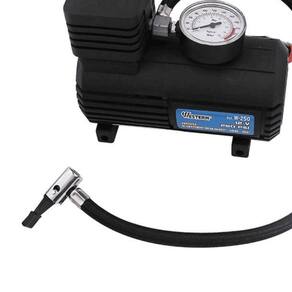 Compressor De Ar Wsetern Mini 12v.. Especificacao Tecnica Compressor ar mini 12v - Caracteristicas: - 250 PSI. - 12V. - Com calibrador de Ar. - Comprimento total do fio: 3m - Pluge para conexao no acendedor de do veiculo. Para inflar: - Pneu de automovel. - Pneu de Bicicleta. - Equipamento Esportivo. - Produtos Inflaveis. - Bola. - Bote. - Etc... Leia atentamente as instrucoes antes de usar: - Selecione o bico correto, encaixe na mangueira e trave. - Insira o plugue no acendedor de do veiculos (12V) e infle com a pressao desejada. - Apos o uso, desconecte o plugue e guarde. - Sepre confira a pressao do item a ser inflado e coloque a medida de pressao de ar correta e evite pressoes excessivas em objetos de baixa pressao. Cuidados: - Nao infle o objeto acima da sua capacidade. - Deve ser somente por adultos. - guarde em . - Guarde estas instrucoes para futuras consultas. - Manter fora do alcance das criancas. Aviso: *Este produto nao deve funcionar continuamente por mais de 10 minutos. A cada periodo de 10 minutos, deixe-o desligado por um periodo de 30 minutos, para que nao aqueca demasiadamente. - Solucionando Problemas: - O compressor nao funciona: 1) O fusivel pode estar queimado. Verifique a funcao do acendedor de . Substitua por um fusivel de 15A se for necessario. 2) Verifique se o acendedor de esta sujo ou contem material estranho. Se necessario limpe com um objeto nao condutivo. Nao use objetos metalicos para limpar. Antes de limpar, desligue a ignicao do carro. 3) Empurre o plugue firmemente no acendedor de e gire para obter um contrato melhor. 4) Confira se o cabo de forca nao esta torcido ou dobrado. 5) Ligue a ignicao do carro. - O compressor funciona, mas nao tem pressao: 1) A causa mais provavel e bateria com baixa voltagem. 2) De a partida no carro, isto aumentara a voltagem para melhorar o desempenho. 3) Para melhores resultados, deixe o motor inativo quando usar o compressor. 4) Gire o plugue no soquete varias vezes para ter um bom contado. 5) Desconecte a unidade, quando alcancar a capacidade maxima. - O compressor nao infla: 1) Verifique o adaptador da mangueira. Tenha certeza que a alavanca esta travada (alavanca para baixo) junto a mangueira. 2) Verifique se nao ha vazamentos na mangueira. 3) Verifique se o objeto que esta sendo inflado nao esta furado. *Imagens meramente ilustrativas. Descricao