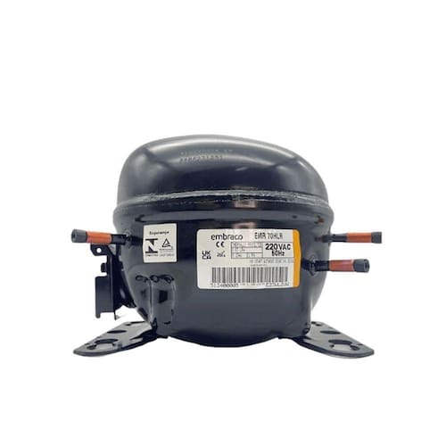 O Compressor Embraco 1/5HP tem a função de circular o refrigerante no interior do circuito, especificamente retirando-o como um gás do evaporador e depois comprimindo-o e fornecendo-o a uma pressão mais elevada à condensação.