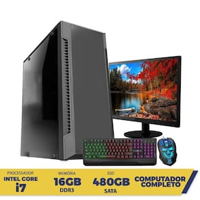 esse computador vem equipado com o intel core i7-4790 4º geração, placa de vídeo integrada intel hd graphics, placa mãe h85 socket 1150, 16gb de memória ram ddr3, ssd 480gb e sistema operacional windows 10. Esse pc se destaca no mercado pelo seu custo benefício, sua performance e rapidez durante o uso, mais 6 meses de garantia, e vem pronto para receber uma placa de vídeo transformando-o em um pc gamer