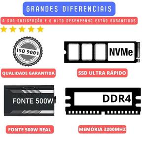Memória de Alta Performance: Equipado com 16GB de memória RAM DDR4 com frequência de 3200Mhz, ideal para extrair o máximo de poder de processamento do seu setup e trabalhar com vários aplicativos abertos.