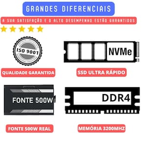 - Slots: PCI-e x1 3.0, PCI-e x16 4.0, M.2 (Socket 3, M key, 2242/2260/2280 SATA e suporte a SSD PCIe)