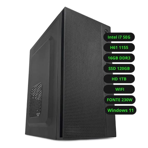 Computador CPU Intel Core i7 Segunda Geração Placa Mãe H61 Memória Ram 16GB DDR3 SSD 120GB HD 1TB WiFi Fonte 230w Bivolt