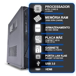 MODELO: GABINETE PRETO ATX | INTEL CORE I5 10 GERAÇÃO