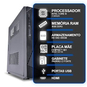 MODELO: GABINETE PRETO ATX | INTEL CORE I5 3 GERAÇÃO