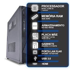 MODELO: GABINETE PRETO ATX | INTEL CORE I5 7 GERAÇÃO