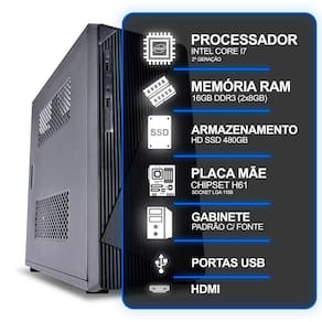 MODELO: GABINETE PRETO ATX | INTEL CORE I7 2 GERAÇÃO