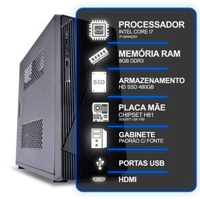 Computador Desktop, Intel Core I7 3º Geração, 8Gb Ram, Hd Ssd 480Gb, Conexões Usb/Vga/Hdmi/Lan/Som