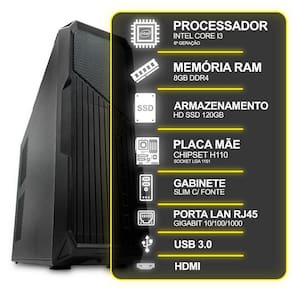 Obs: Imagem ilustrativa do produto, o modelo do gabinete a ser enviado dependerá da disponibilidade no momento da montagem do computador, sempre respeitando o padrão de cor preto e boa qualidade do produto. Não acompanha monitor, teclado, mouse ou caixas de som. Não acompanha gravador de dvd. Ean: 7792884479852