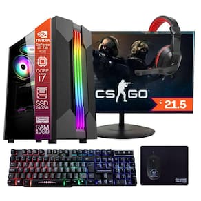 Com o Computador Gamer Completo Intel Core i7 16GB de Memória SSD 240GB Placa de Video Geforce 4GB Monitor 21.5" teclado mouse mouse pad e Headset Gamer gabinete gamer RGB com windows e diversos jogos instalados, você terá alto desempenho e designer Gamer moderno.