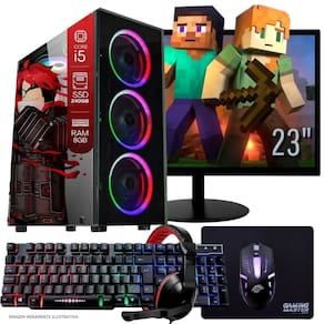 1 Computador Gamer Completo TOB Intel Core i5 SSD 240GB 16GB Teclado Mouse Mouse Pad e Headset Gamer Monitor 23" Windows 10 Pro Trial
