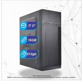 Computador Novo, I7, 16gb, SSD 512gb, Wi-FiComputador ideal para usuários que usam muitas abas, programas e até edições mais leve.Processador: Intel Core I7 2 geraçãoMemória Ram: 16gb DDR3Capacidade de armazenamento: SSD 512gbFonte 200w bi-voltWindows 10 ProComputador novo, com garantia de 01 ano.O modelo do gabinete depende da disponibilidade no dia da compraConteúdo da caixa:Um Computador e um cabo de força.Não Acompanha outros itens, como Monitor, teclado, mouse, etc.Consulte outras configurações e anúncios.Caso necessário temos técnicos disponíveis para tirar qualquer dúvida e auxiliar na instalação.Homologação Anatel: 025931304858 Marca: Schneider Computer