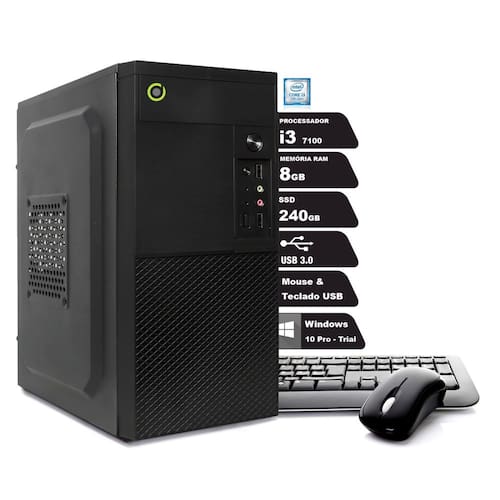 Inclui: - Teclado e Mouse USB: Perfeitos para completar sua estação de trabalho. - Sistema Operacional Windows 10 Pro Trial: Estável e seguro para todas as suas atividades.